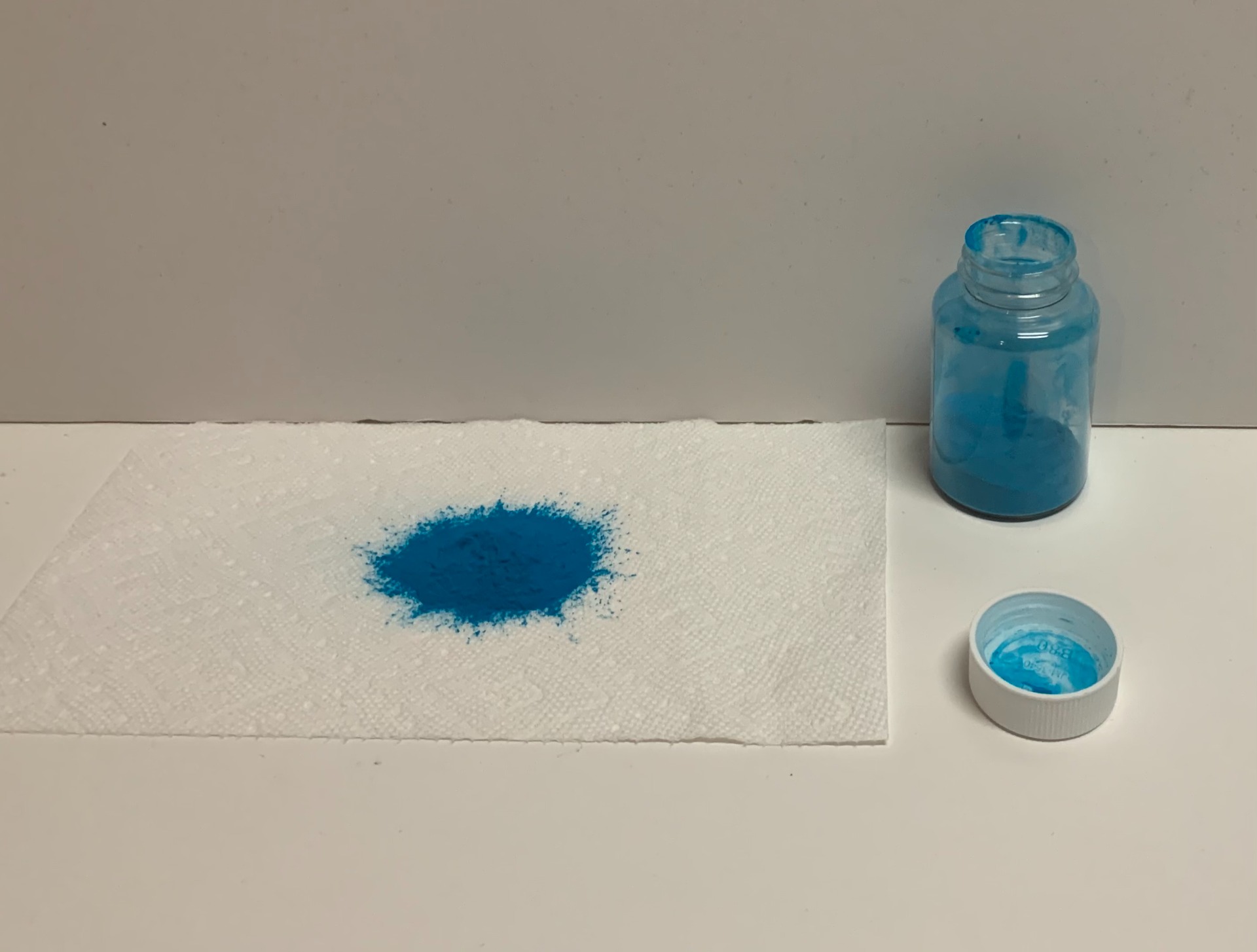 Hello! This is my first blog post here! Today, I would like to discuss a compound that I find rather interesting, known as copper(ii) aspirinate. It goes by other names, such as copper(ii) acetylsalicylate, as well. Its chemical formula is C36H28Cu2O16 and it has a molar mass of about 843.69 g/mol. There is little information that I can find on the internet about this compound other than how to synthesize it and its possible use as a medication for rheumatoid arthritis. The sample shown in the image was synthesized by myself, starting will aspirin pills. Copper(ii) aspirinate is formed through the reaction of a solution of sodium aspirinate and a solution of copper(ii) sulfate. Copper(ii) aspirinate is insoluble in water, so it precipitates out of the solution and can be filtered out. How I made it using aspirin pills was a slightly longer process, because I had to convert the aspirin into sodium aspirinate.